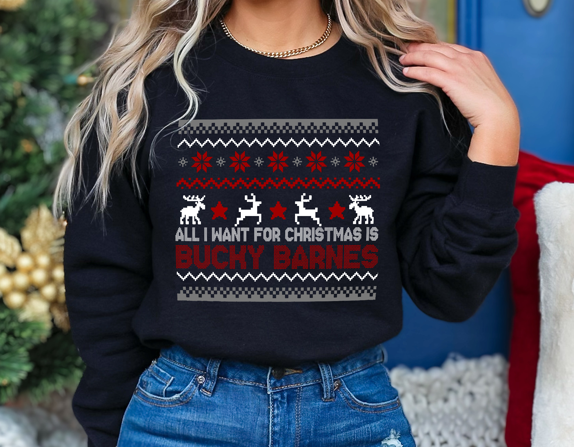 Declare your allegiance in style with this witty, fandom-approved sweatshirt. Featuring the phrase “All I want for Christmas is Bucky Barnes" it’s the perfect mix of cozy and chaotic energy.