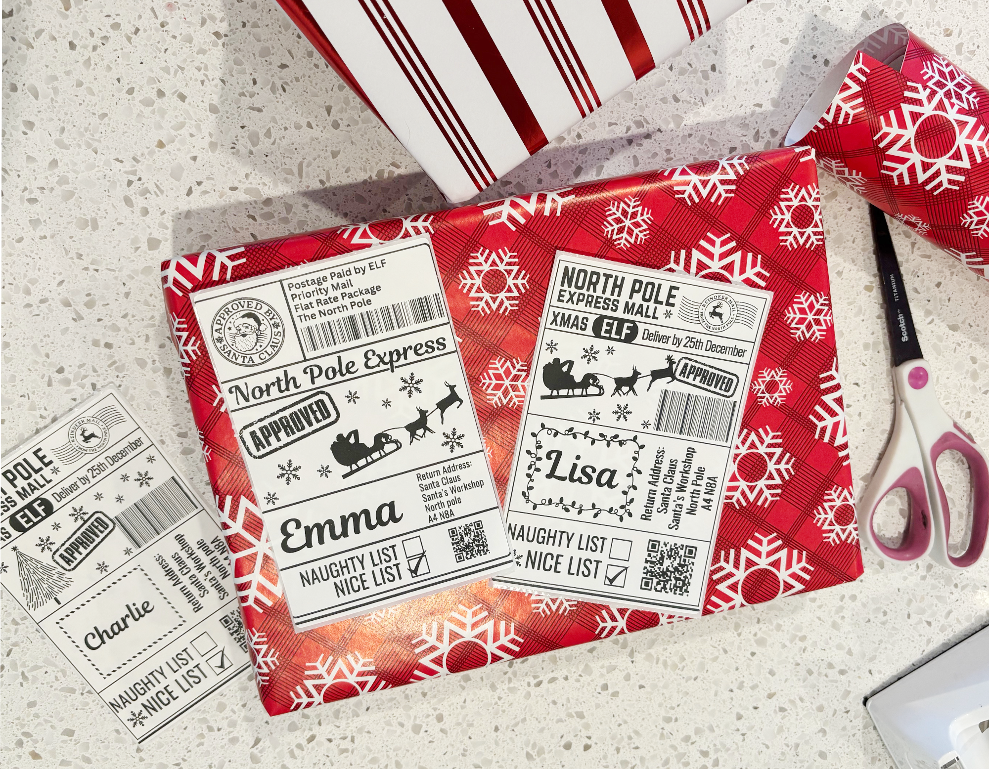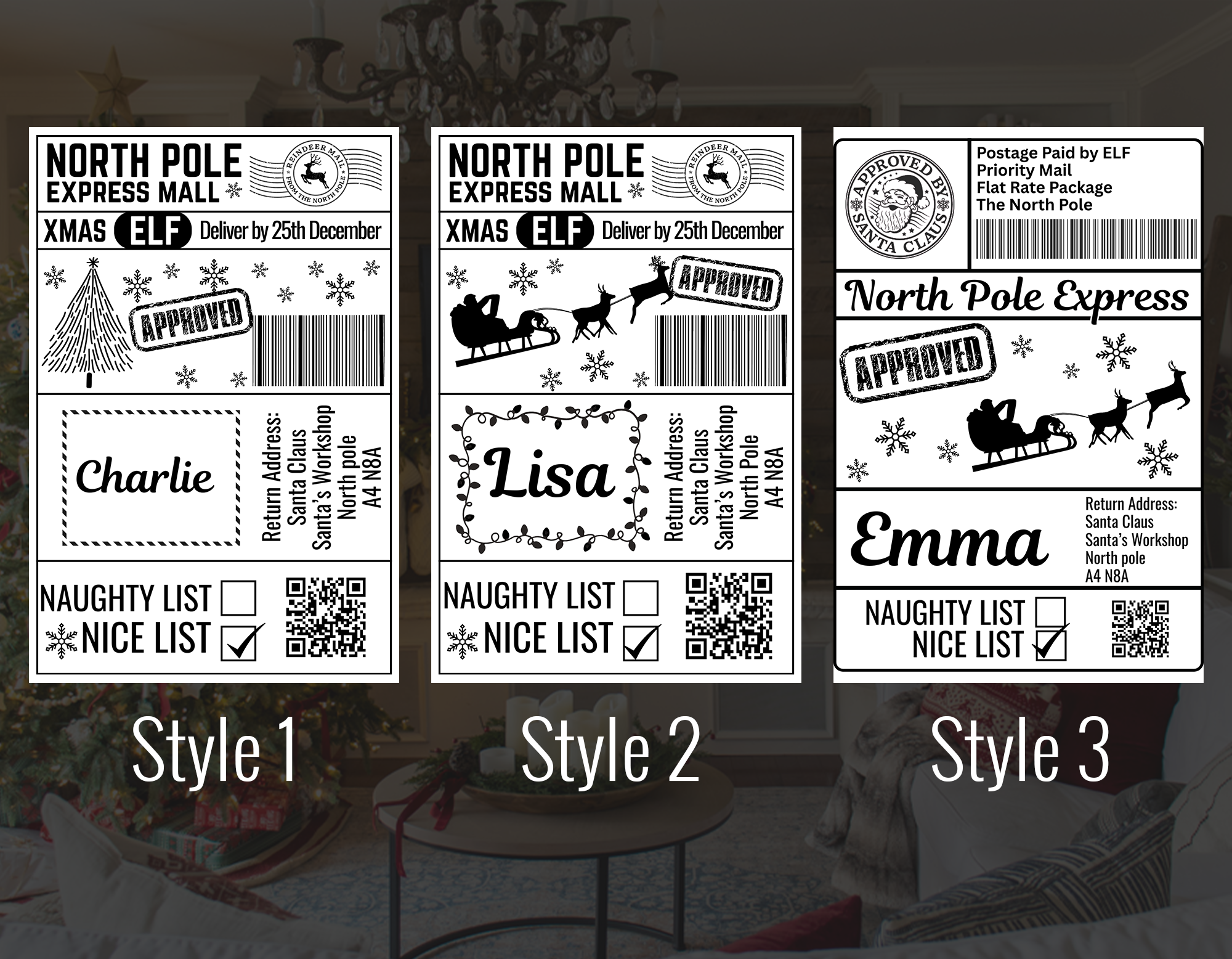 Each label can be personalized with your child’s name, making every delivery feel like it traveled all the way from the North Pole. Choose from three charming designs and select the perfect pack size for your needs: 5, 10, 15, 20, or 25 labels.