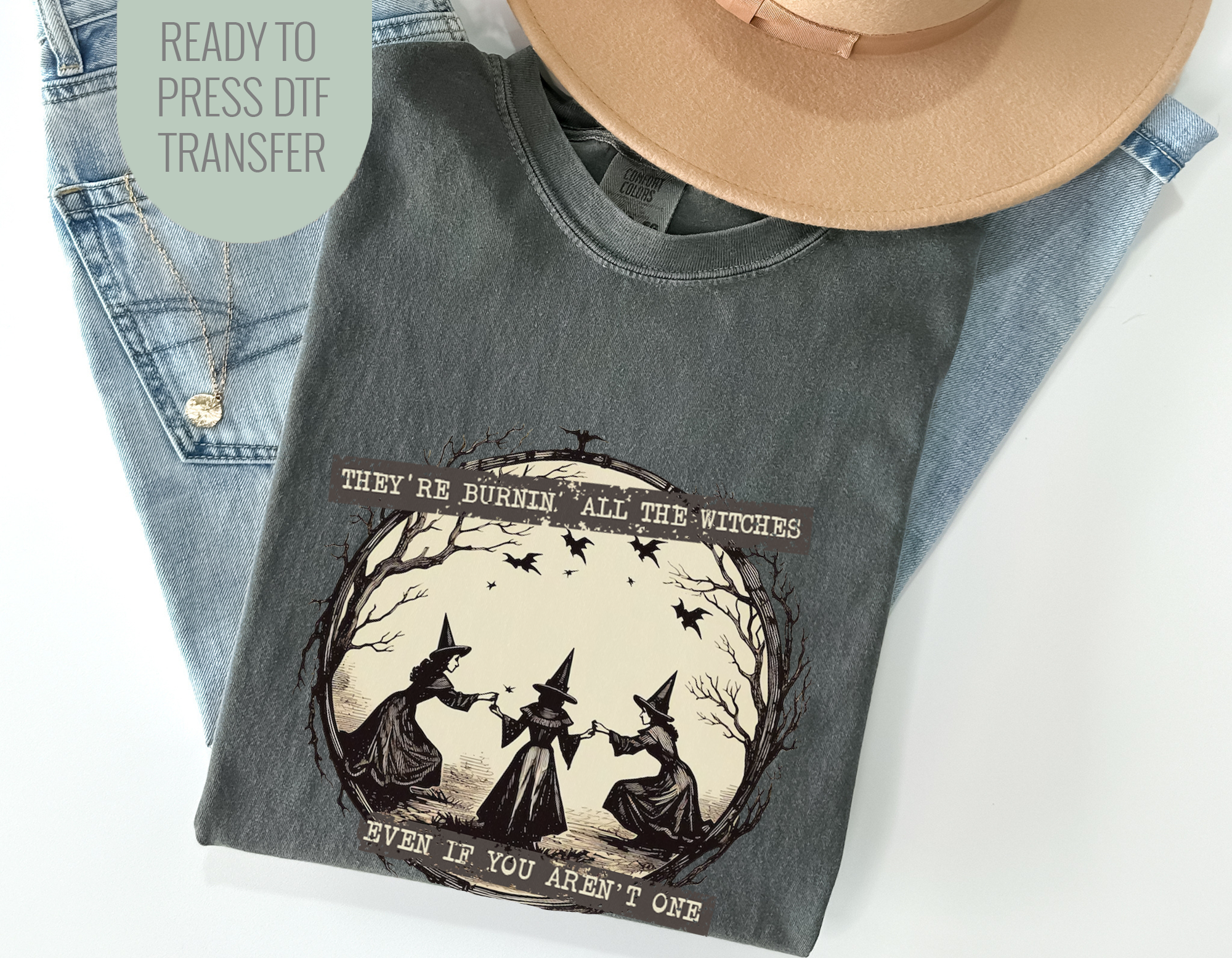 • Load image into Gallery viewer, They're Burnin' all the Witches DTF Print
