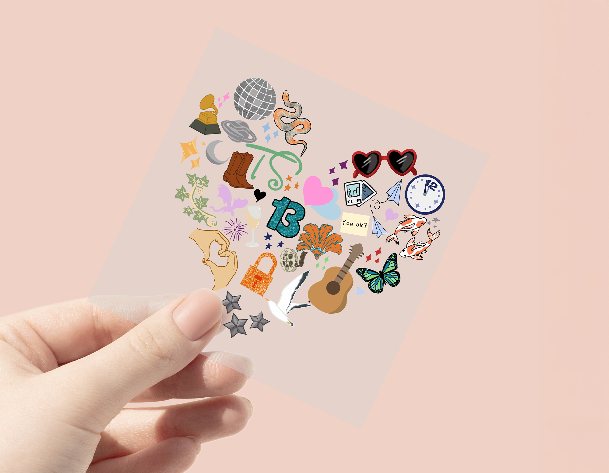 For the fans who know every lyric, every era, and every hidden reference 💫 This symbol-filled heart sticker is packed with tiny details inspired by the music and storytelling of Taylor Swift. Each symbol represents moments, themes, and eras that Swifties instantly recognize, all coming together to form one beautiful heart.